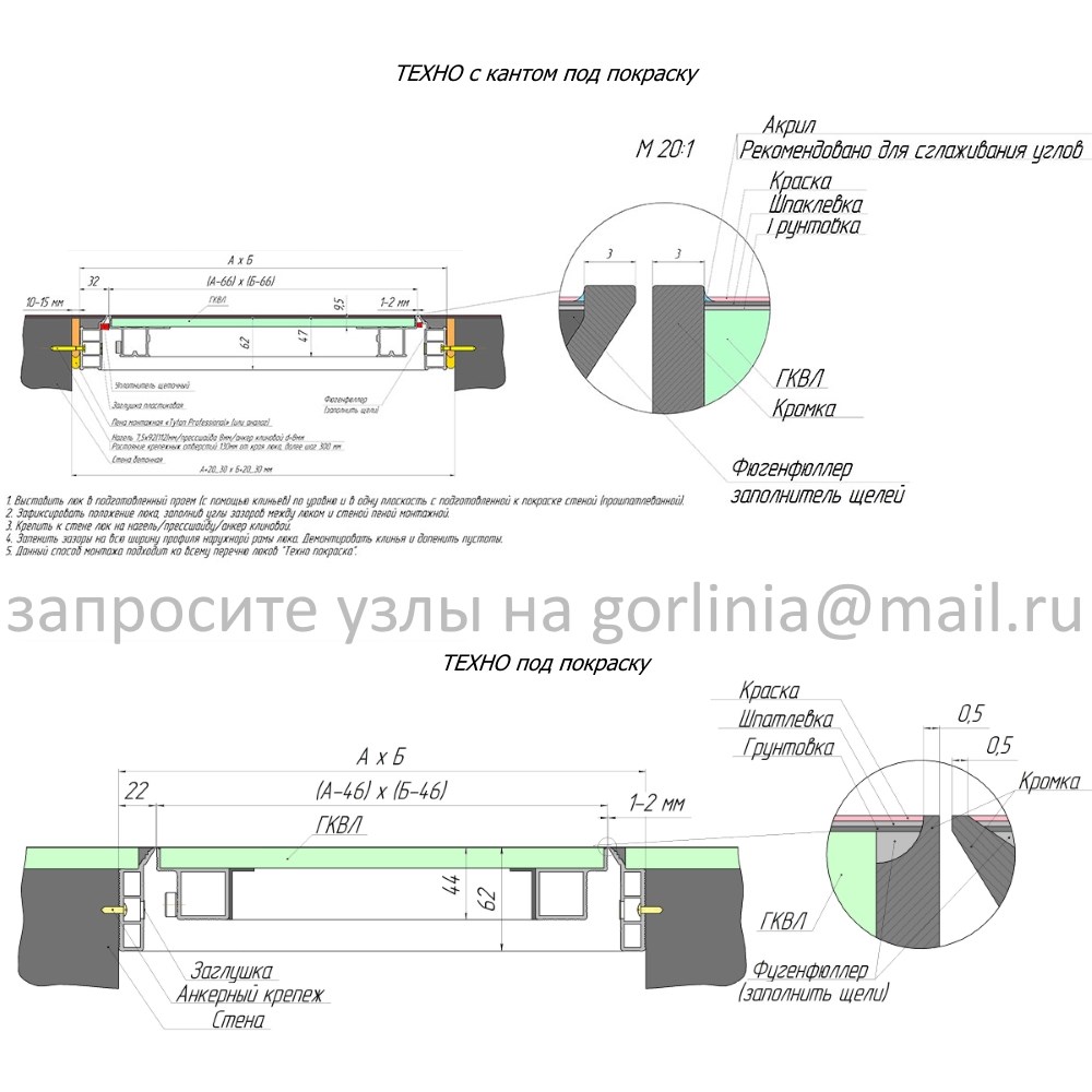 Размеры створки и проема зависят от наличия защитного канта у профиля