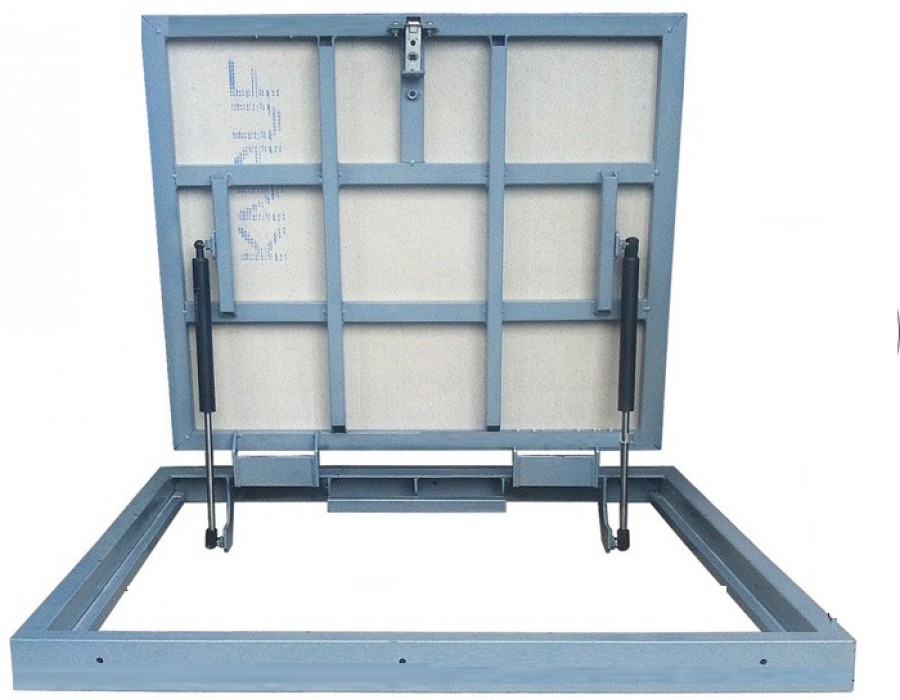 Раму из профильной балки 60*30 мм без наличников легче выставить в горизонт даже в неровном проеме. Начните установку с выставления и крепления петлевой стороны, потому что это подвижное соединение. Выставите в горизонт в уровень люка, а не пола. Далее выставляйте остальные углы и стороны рамы. Важно выдержать нулевую отметку, чтобы дверца закрывалась и равномерно ложилась на опорную площадку без провисаний и "винтов".