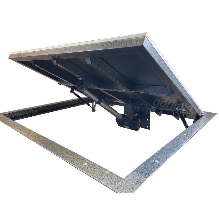 К стандартной модели люка в погреб SТЕЛС прибавляется материальная часть: электропривод - актуатор, блок управления и кнопка открывания - закрывания. В комплектацию люка в подвал с электроподъемником не входят газовые амортизаторы и замок со съемной ручкой ключом.