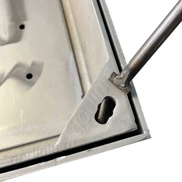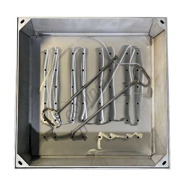 Полую крышку вынимают специальными крюками через отверстия по углам корыта. Для удобства установки рекомендуем заказать исполнение с крепежными ушами (пластинами). Усиление каркаса крышки профилем 50х25 также является дополнительной опцией (см. галерею фото)