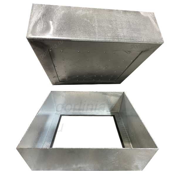 Полую крышку зацепляют через отверстия по углам и вынимают специальными крюками. Закажите исполнение с крепежными ушами (пластинами) для удобства монтажа и выставления в уровень земли. Усиление каркаса корыта профилем является доп. опцией (см. галерею фото)