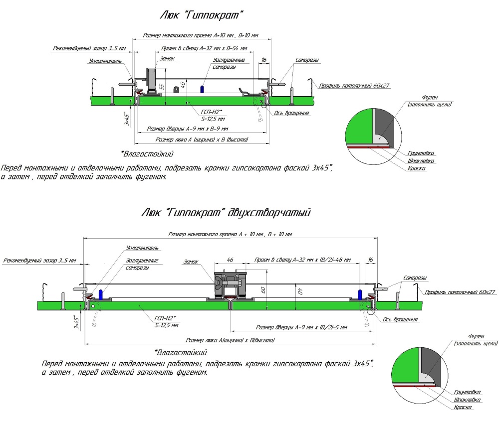 Нажимная дверца ходит на несъемных петлях с одной осью вращения, дополнительно фиксируется в коробке через съемную перемычку по центру. На больших створках в каркас закладываются элементы дополнительной обвязки.