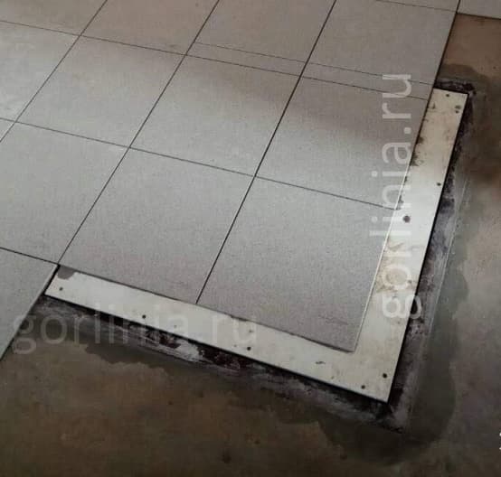 Конструкция смещенного за ось открывания узла шарнира позволяет изготовителю сформировать опорную поверхность по стороне петли 800, сохранив при этом ширину лаза 800 для устройства лаза в погреб с приставной лестницей.