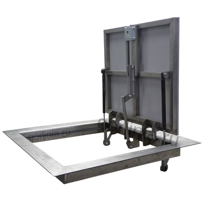 Вы ходите по закрытой крышке, как по обычному полу, обвязка полотна держит нагрузку до 200 кг на квадратный метр. Каркас опирается на трубу 15х15 по трем сторонам, на петли по четвертой.