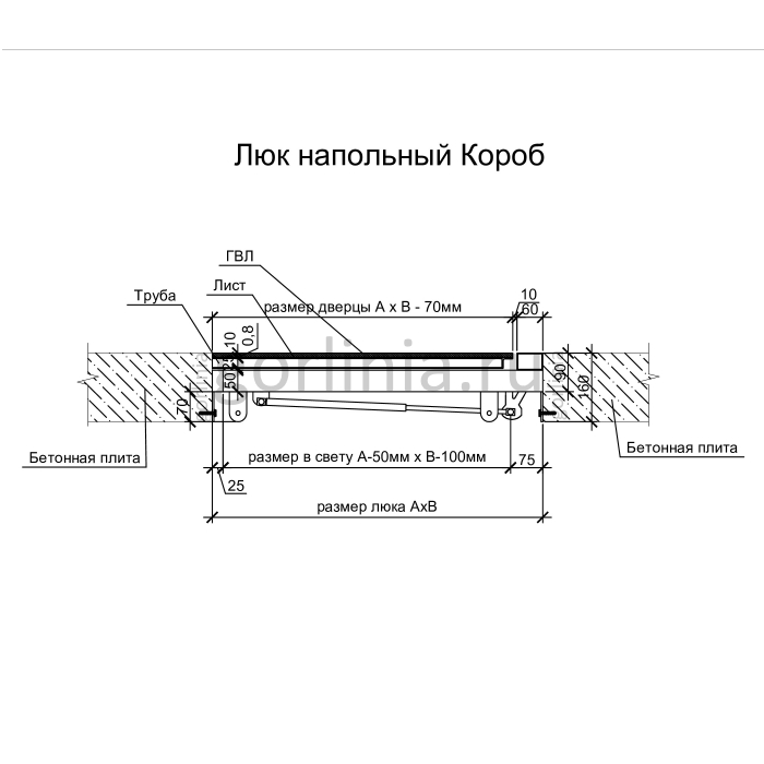 Рама без наличников выставляется в существующем отверстии 80*100 см с допусками, крепится в перекрытии через вертикальные пластины даже когда Ваш ремонт закончен и пол выложен керамогранитом или настелена ламинированная доска.